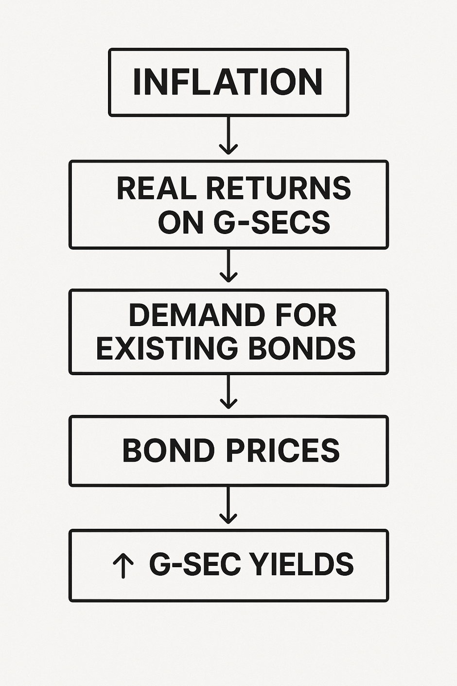 To compensate for lower real returns, investors sell older G-Secs (with lower interest) and demand new bonds with higher interest rates.